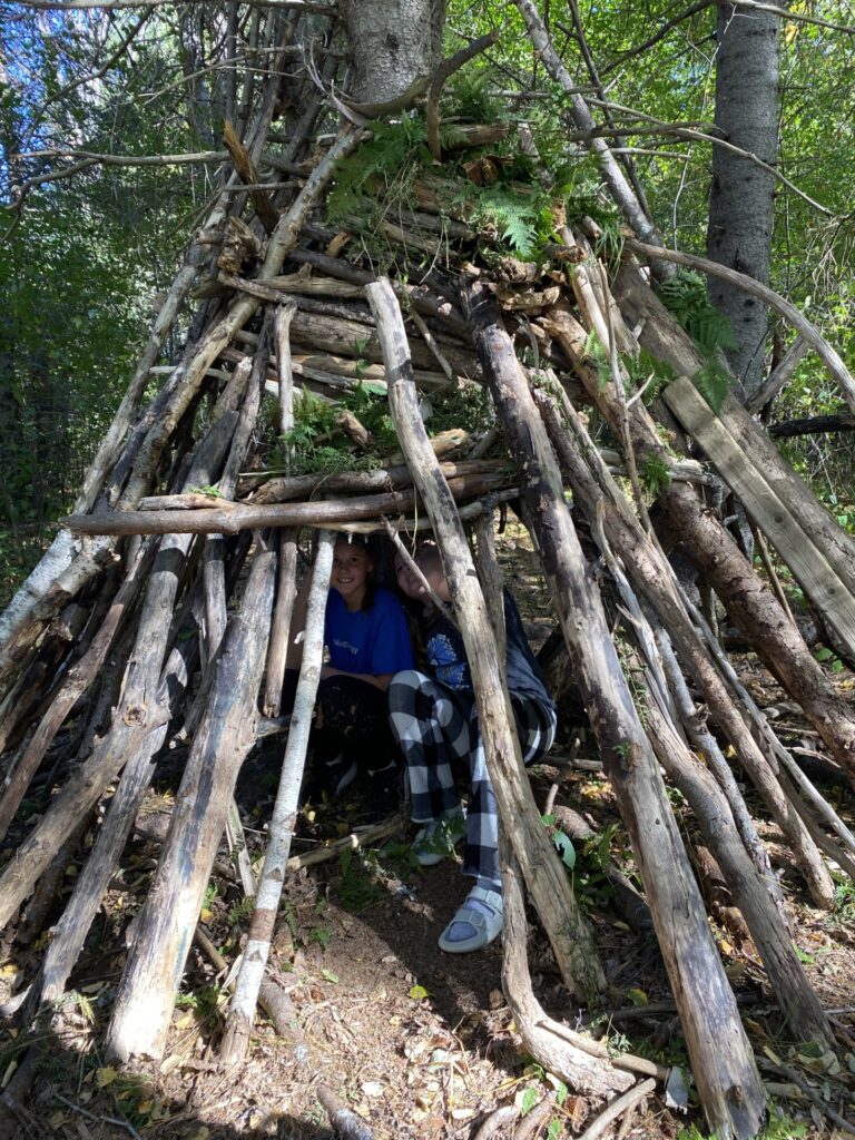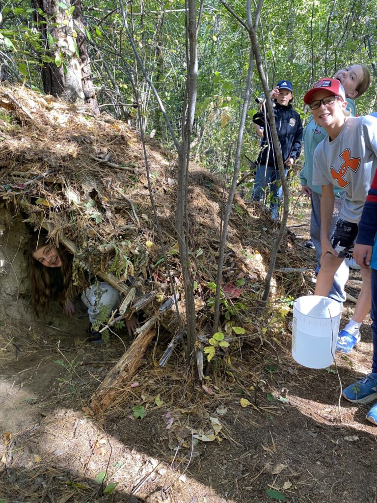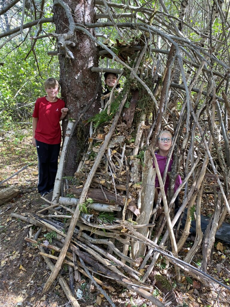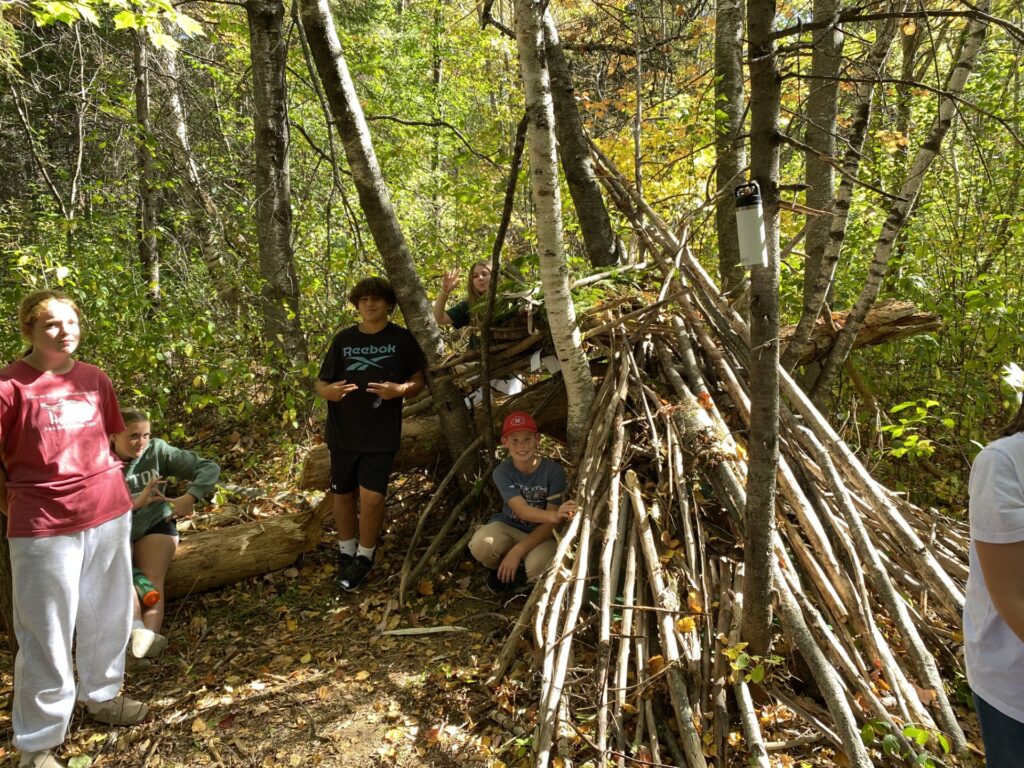 Students in 6/7 FI had a chance to work in groups to build forts/shelters in the woods as part of their STEM exploratory class. Their forts were meant to be able to have enough room for all of their group members to fit inside and to also be able to have a roof to keep the water out. Bien fait les élèves!!